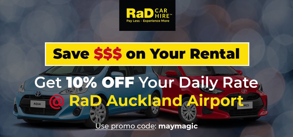 Only valid for bookings picked up and dropped off between 1st May 2026 and 30th June 2026 from RaD Auckland Airport only.