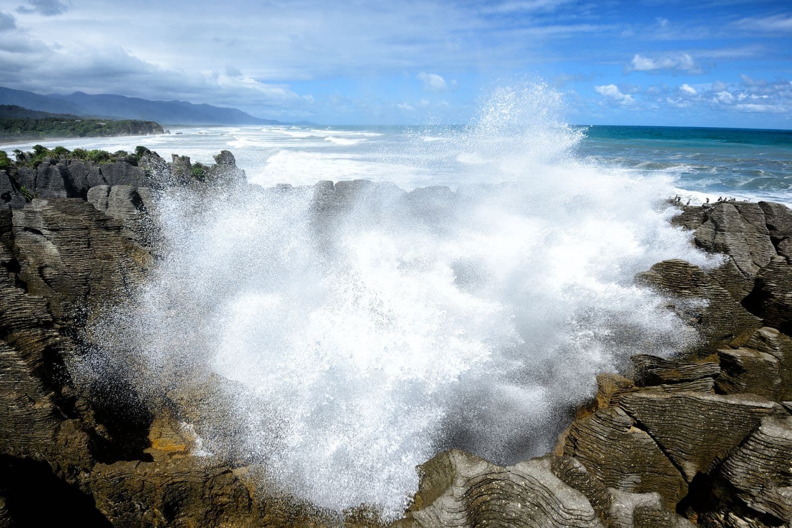 - Pancake Rocks & Blowholes Track: A short (1.1 km, ~20 minutes), wheelchair-accessible loop with lookouts across the rocks and surge pools. High tide is the best time to see blowholes in action.