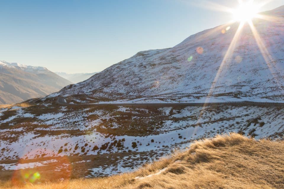 - Crown Range Road: One of New Zealand’s highest main roads and often requiring chains in winter. Steep, exposed and prone to snow and ice.